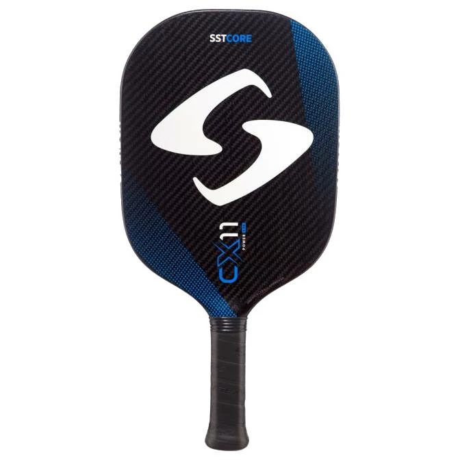 The Gearbox CX11Q Quad Power Pickleball Paddle (Blue) (8.5 oz.) has more pop, is agile and excellent for players with a more aggressive game style or those wanting more power behind their swing.